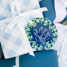 • Shrink-wrapped with a decorative navy label