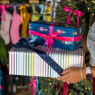 Dress up your holiday gifts with this gift wrap roll featuring a colorful pattern with gold foil details. This design adds a vibrant and joyful touch to any gift, perfect for brightening the recipient's day.