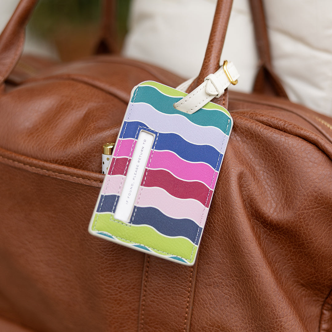 Spot your luggage instantly with our beautiful leatherette luggage tags. Durable leatherette construction protects your contact information while the sophisticated pattern makes your bag easy to identify on any carousel. Features a secure strap, gold hardware, double-sided insert card, and clear ID window to secure your information.